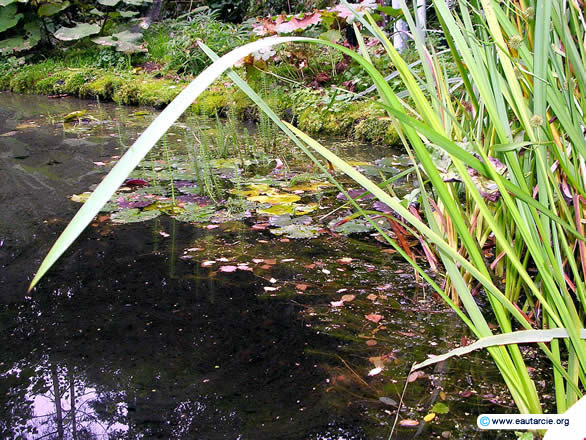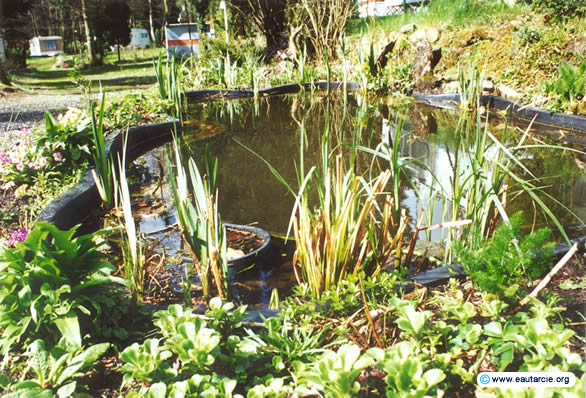 Stagno di finissaggio del sistema di trattamento. È possibile vedere i pesci. L’acqua del troppo-pieno di questo stagno è conforme alle norme europee per la produzione di acqua potabile.
